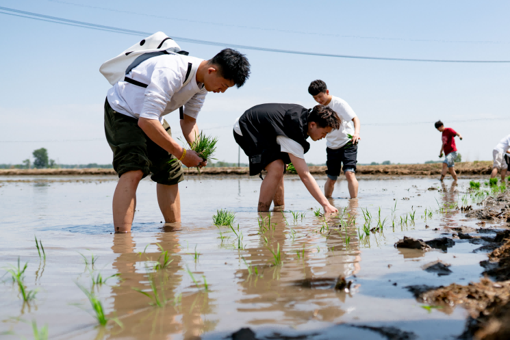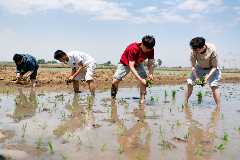 在沈北新区兴隆台街道大孤柳村第一书记姜奇的带领下,系内学生来到稻梦小镇的稻田边,在一方方稻田里,同学们脱下鞋子、卷起裤腿、弯下身子。“扎”进田里播种秧苗。任凭汗水湿透衣背、泥巴裹满双腿,每个人的脸上都洋溢着劳动的喜悦。随后,大家参观了亚洲最大的米糠酵素浴,参观了村集体经济。最后,大家来到稻梦小镇锡伯学堂,在那里聆听了“一粒米”的故事。
