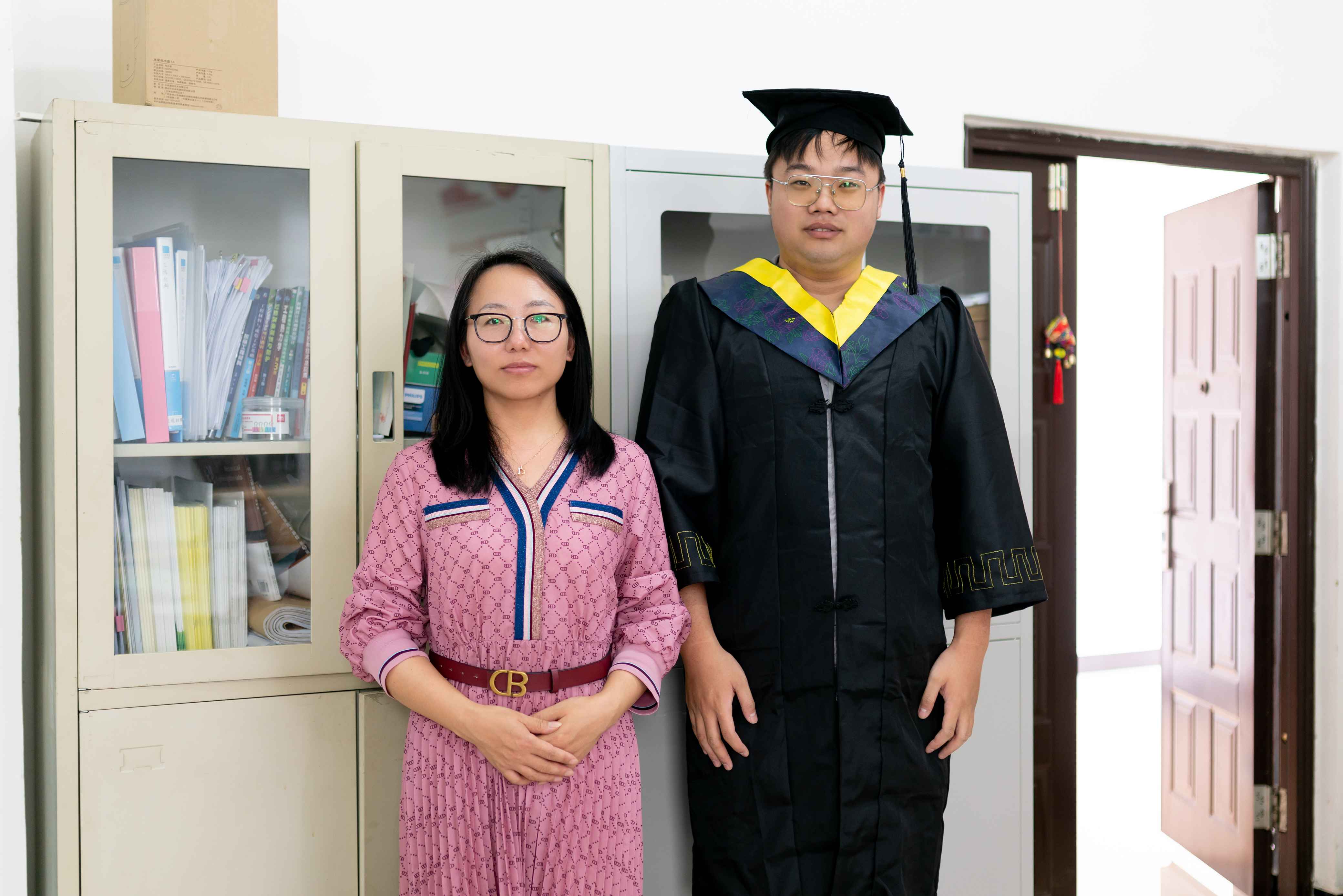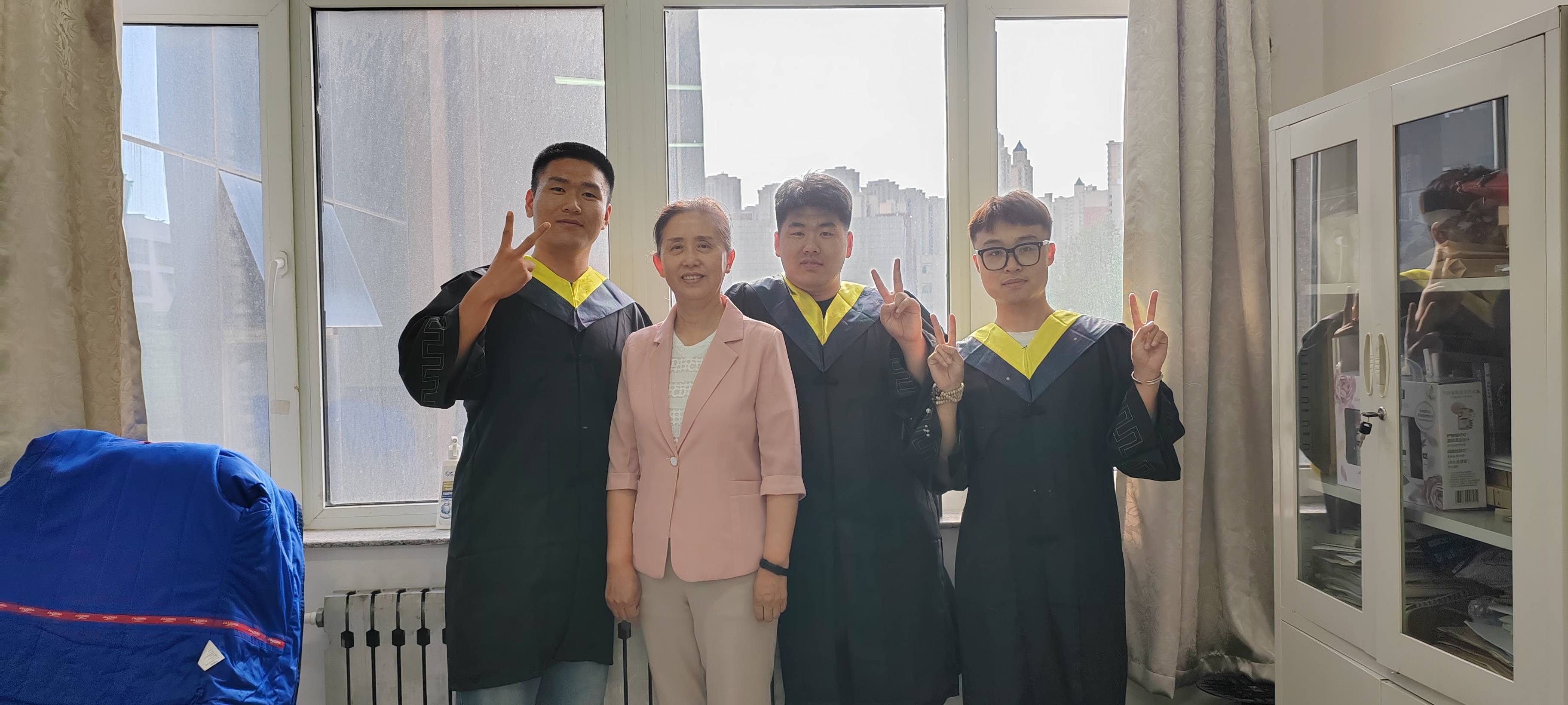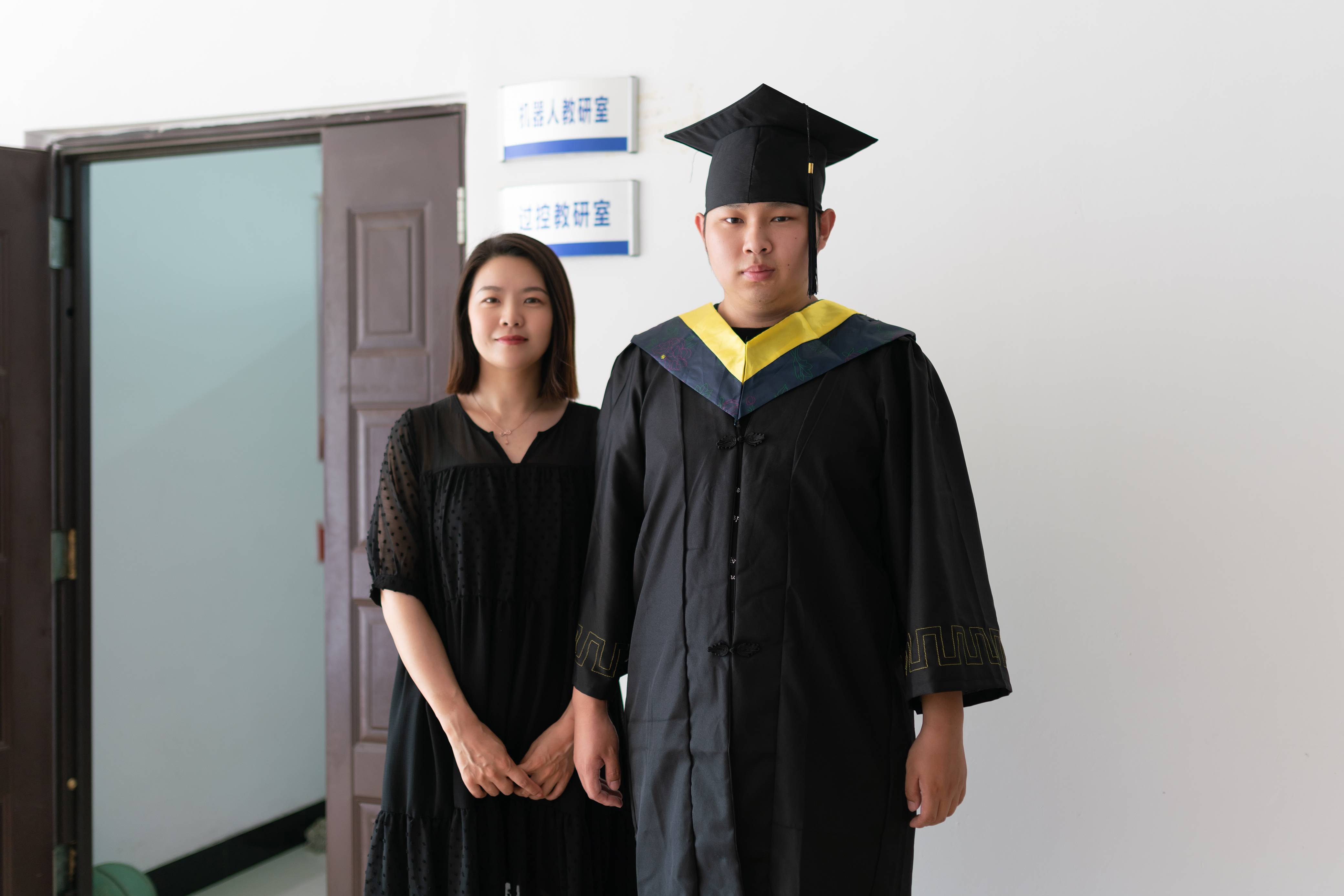 身着学士服,头戴学士帽