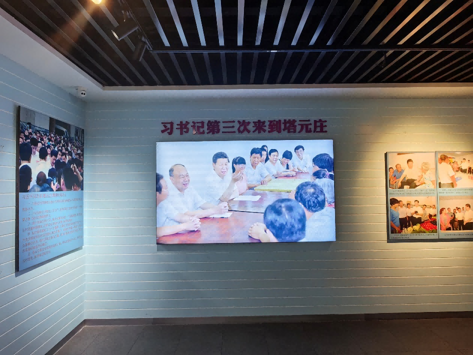 在讲解员的带领下,实践团师生先后参观了塔元庄文化长廊、塔元庄村委会大厅、塔元庄村史馆等文化景观,并观看了“蝶变塔元庄”纪录片。在参观村史馆中,讲解员以时间为线索带领实践团师生重温了塔元庄的发展历程,和习近平总书记在正定生活工作的点滴。从低矮平房到宽敞楼房,从单一经济到多元经济,从贫困落后到奔向小康,处处体现着习近平总书记的为民情怀、实干作风和改革精神。讲解员绘声绘色的讲解,使同学们在馆内流连忘返,把同学们带回了那个充满热血与奋斗的年代。
