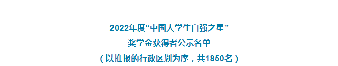 近日,由共青团中央、全国学联指导,中国青年报社、新东方教育科技集团、中国青年创业就业基金会联合举办的2022年度“中国大学生自强之星”奖学金推报活动结果揭晓,此次全国范围内共表彰“中国大学生自强之星标兵”奖学金获得者10名,“中国大学生自强之星”奖学金获得者1850名。