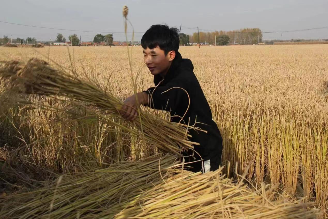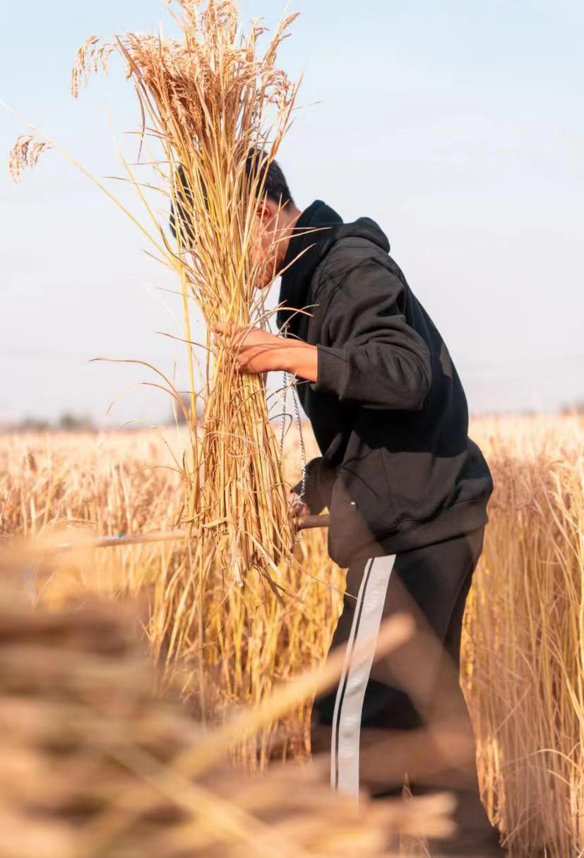 在沈北新区兴隆台街道大孤柳村第一书记姜奇的带领下,系内学生来到田边“撸起袖子,双腿马步弯腰,右手握住镰刀,在搂一把水稻,稍用力一拉,稻谷就完成了收割,不一会就堆满了田埂……”。活动中,大家手拿镰刀争相体验,忙碌地穿梭在田间,现场热火朝天。同学们从课堂走进田间地头,采用传统方式收割水稻,现场沉浸式地体验了劳作的辛酸和收获的喜悦,用双手去创造丰饶的季节,用汗水交换大自然的馈赠。
