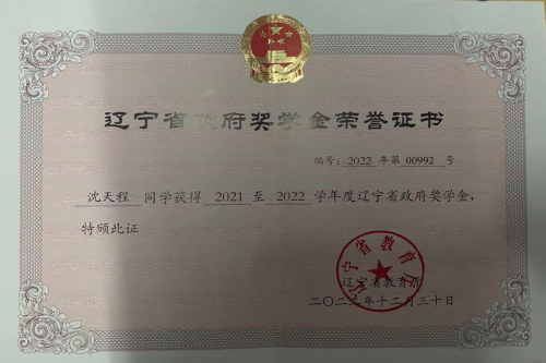 2022年12月,荣获2021-2022学年辽宁省政府奖学金