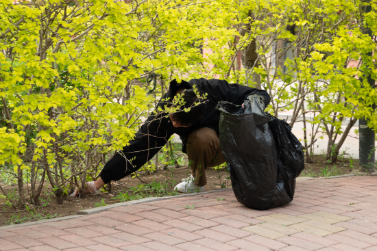 在阳光的照耀下,志愿者们热情高涨,分工合作,有条不紊地进行着垃圾的捡拾工作。他们或弯腰拾起地上的烟蒂,或细心清扫草坪上的杂物,每一个动作都显得那么认真而专注。活动中,还特别设置了一项有趣的奖励机制:每捡拾十个烟头,就可以换取一包纸抽和一块香皂,这一举措不仅激发了大家的积极性,也增强了大家的环保意识。