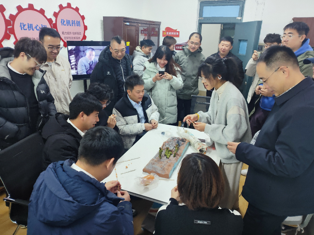参观结束后,大家来到化工与机械学院进行交流。化工与机械学院党总支书记郭志新、院长程德红对到访人员表示热烈欢迎。双方共同走访了化工与机械学院“春风化机”一站式学生社区,与社区学生共同开展用面捏制抗美援朝人物活动。随后双方党总支书记分别介绍了各自学院党建工作的特色做法和经验成果,并就如何加强基层党组织建设、提高党员教育管理水平、创新党建活动形式等问题进行了深入交流和探讨。