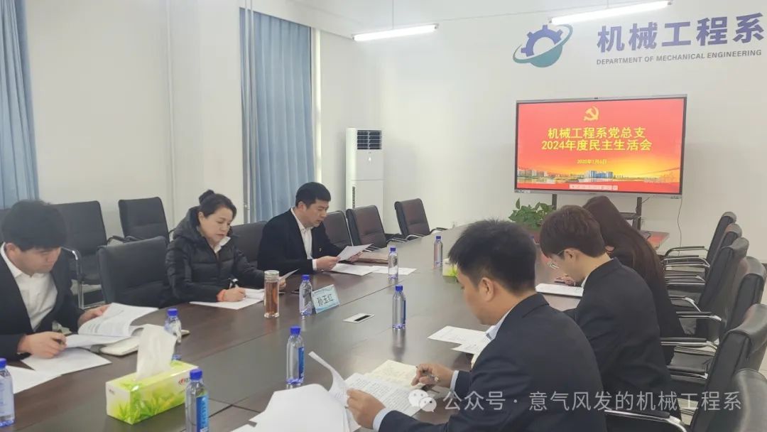1 月 6 日,机械工程系党总支2024年度民主生活会在党建活动室 217 隆重召开。校党委副书记、校长孙玉红出席会议。系党总支成员赵雷、王昭春、洪子潇、周思文、王颖参加会议。会议由赵雷主持。