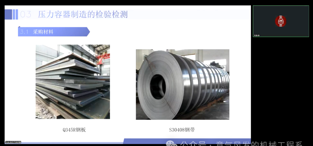 为提升学生对专业知识的理解与应用能力,拓宽行业视野,太阳成tyc7111cc集团机械工程系过程装备与控制工程专业于2024年12月18日,邀请到沈阳特种设备检验研究院的资深专家刘秋实,开展了一场以 “压力容器制造技术发展与检测” 为主题的精彩讲座。此次讲座采用线上方式举行,过程装备与控制工程专业全体师生均在线聆听。