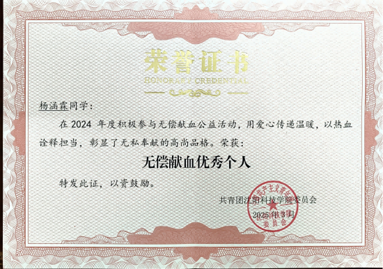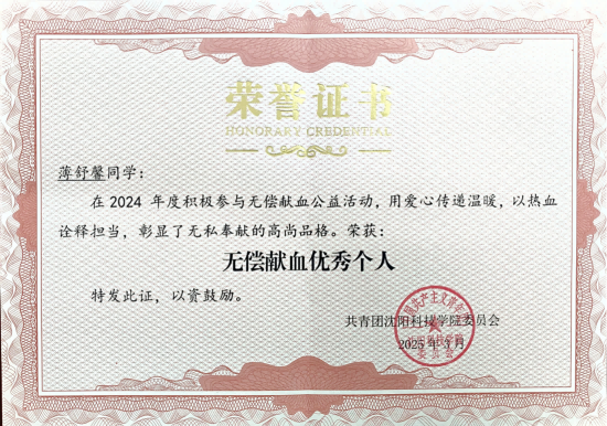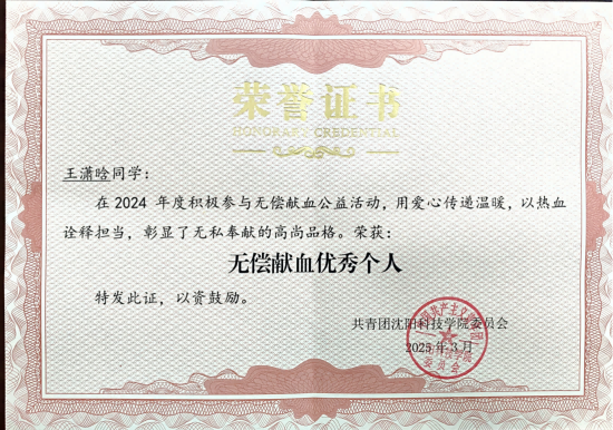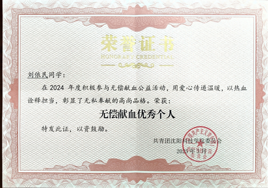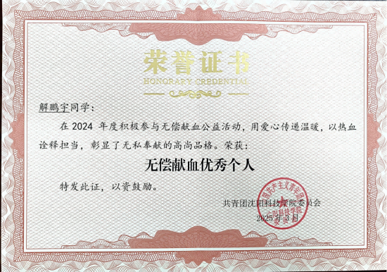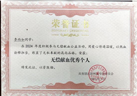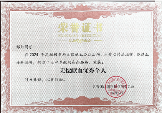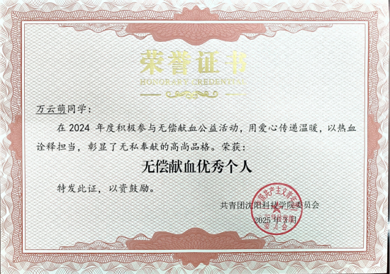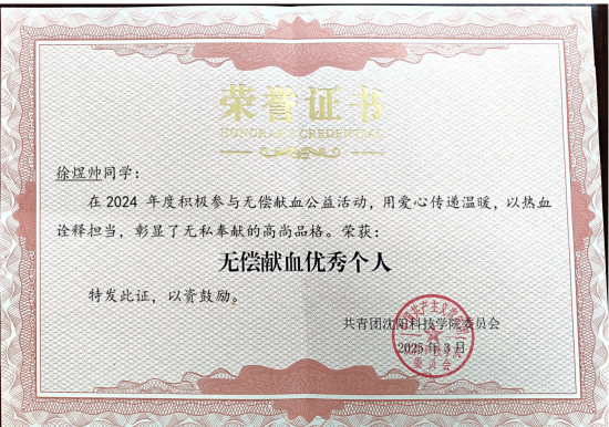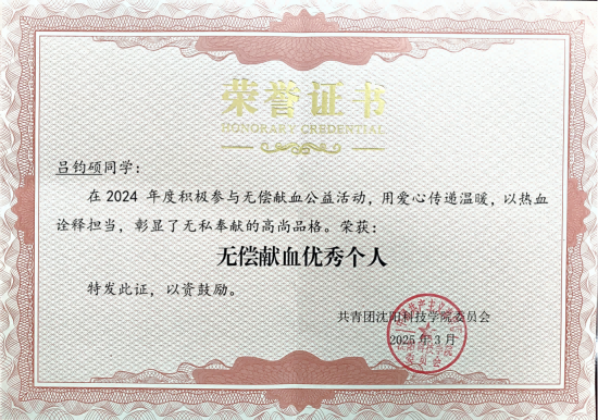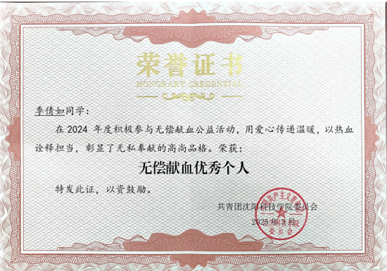 在无偿献血活动中,我系学生积极响应号召,踊跃参与,用实际行动诠释了“无私奉献、救死扶伤”的高尚情操。其中,多名学生因多次献血、表现突出,被授予无偿献血优秀个人称号。