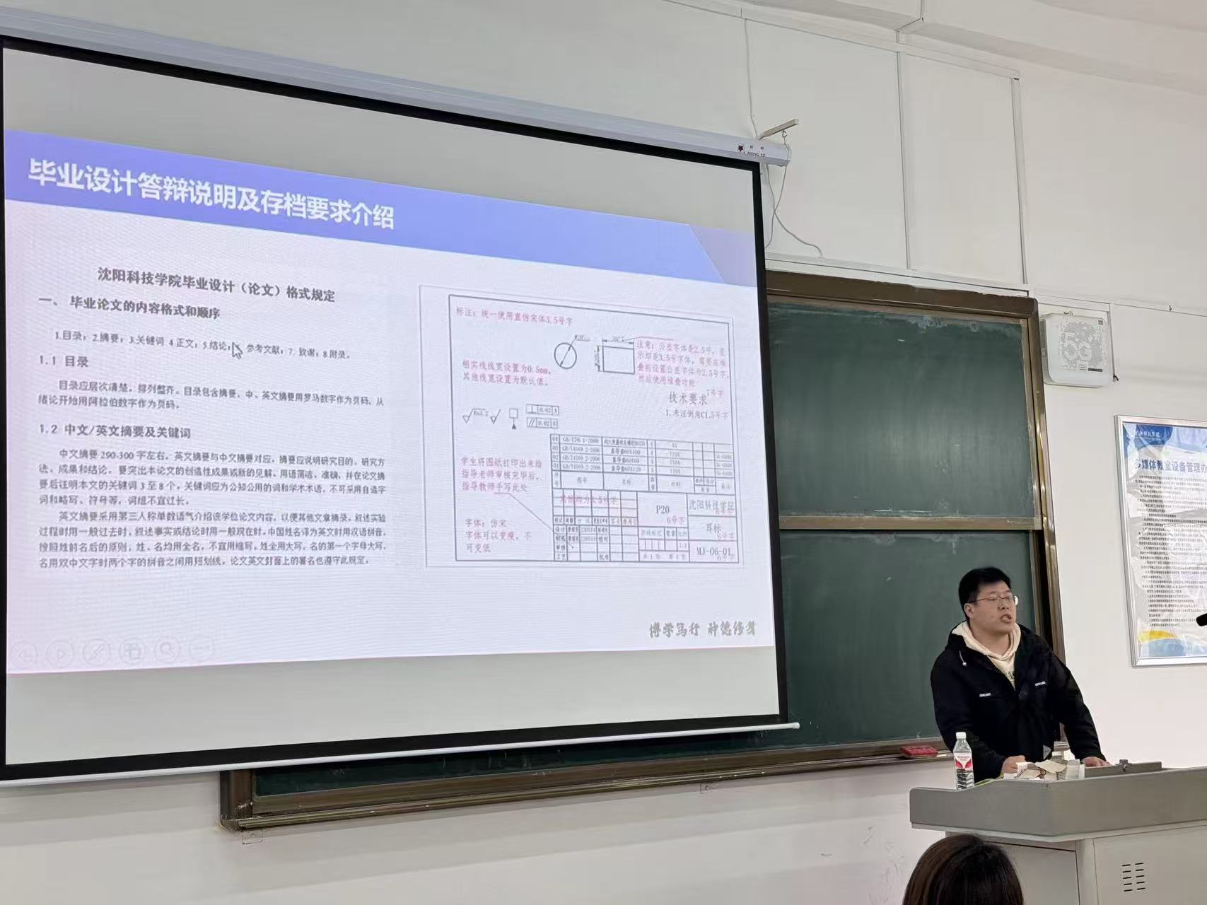 随后,高雨航老师详细讲解了毕业设计的流程及存档要求。他从选题、开题报告、设计实施、论文撰写到最终的存档,一一进行了细致说明,强调了每个环节的重要性和时间节点,确保同学们对毕业设计的全过程有清晰的认识。李云革老师则重点讲解了论文的书写要求和答辩要求,从论文的格式、内容结构到答辩时的注意事项,都进行了全面的指导,帮助同学们更好地准备毕业论文和答辩环节。