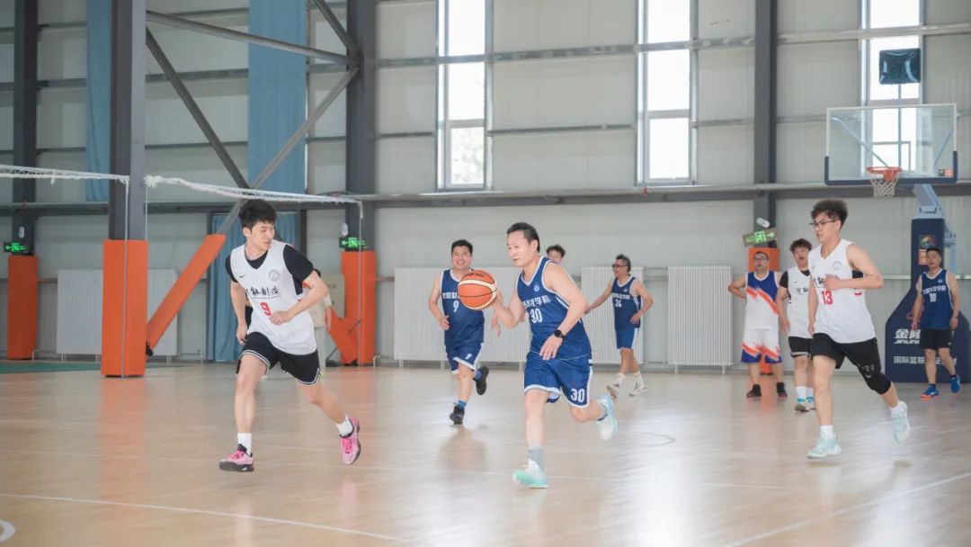 比赛伊始,双方队员迅速进入状态,展开激烈角逐。教师联队凭借丰富的经验和默契的配合,不断发起进攻。学生联队则凭借充沛的体力和灵活的身手积极防守、快速反击。场上比分你追我赶,互不相让。教师们在球场上展现出沉稳与自信,精准的投篮、巧妙的传球,赢得现场观众阵阵喝彩。毕业生们则充分展现出年轻人的冲劲与活力,犀利的突破、顽强的篮板争夺,彰显着青春的热血与激情。
