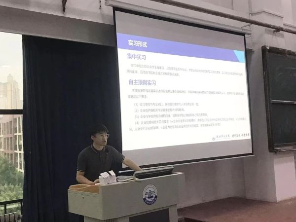 会上,洪子潇向学生说明毕业实习的重要意义、实习方式、安全注意事项、实习时间、考核方式和考核标准,以及推荐实习单位岗位介绍等。实习形式分为两种:一是集中实习,实习单位为校企合作单位,这些单位与学校长期合作,能够为学生提供专业对口且有保障的实习环境;二是自主顶岗实习,要求学生选择的单位需是与本专业相关的,企业有具备相关专业背景的校外指导教师,企业与学院具有良好的沟通,能协助学院过程指导和过程检查管理。实习内容包括完成实习任务书内容要求、调整好心态和自我认知、完成企业交给的任务、了解自身就业规划以及做好毕业设计前期研究工作。