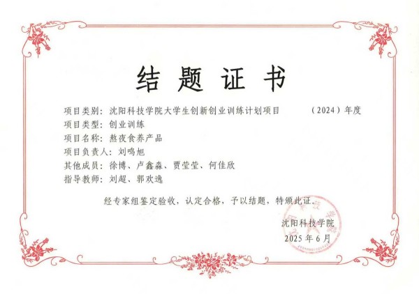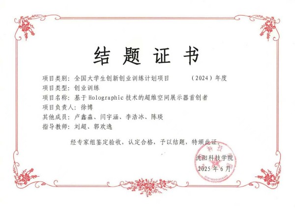 4.2024年6月获辽宁省教育厅办公室国家及省级大学生创新训练计划立项中获得国家级立项1项、校级立项2项
