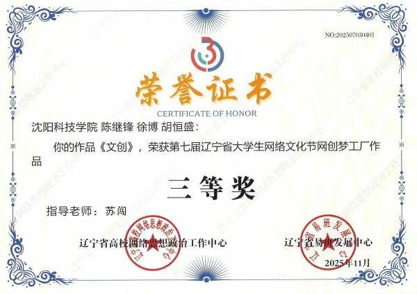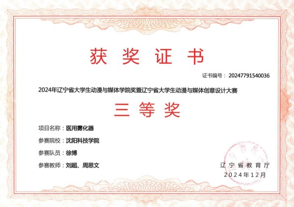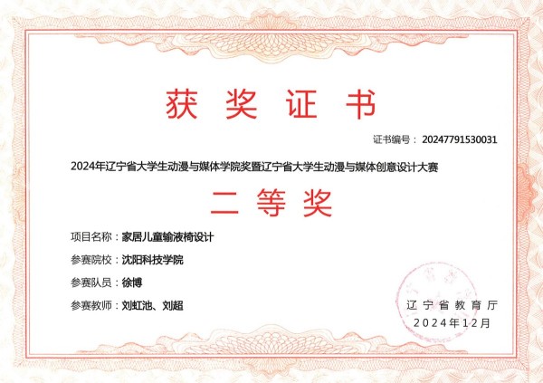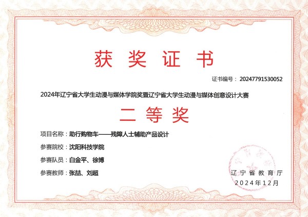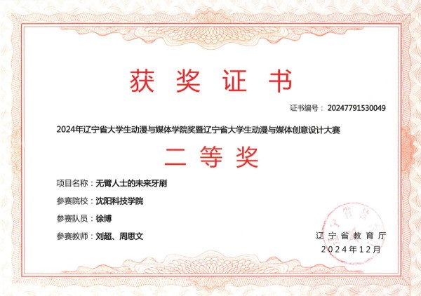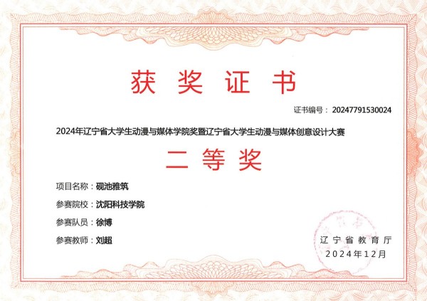 10.2024年12月获辽宁省大学生动漫与媒体学院奖暨辽宁省大学生动漫与媒体创意设计大赛二等奖4项、三等奖4项、优秀奖4项;
