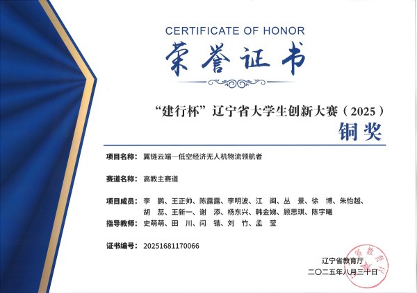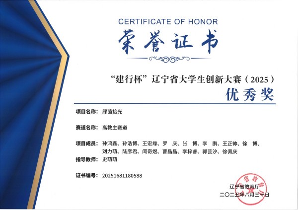 14.2025年8月获“建行杯”辽宁省大学生创新大赛(2025)中获铜奖1项、优秀奖3项