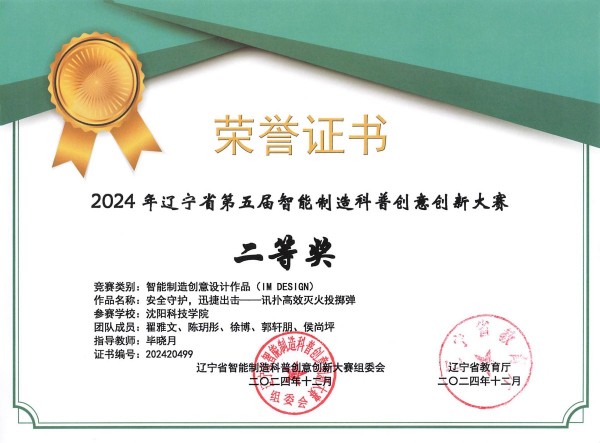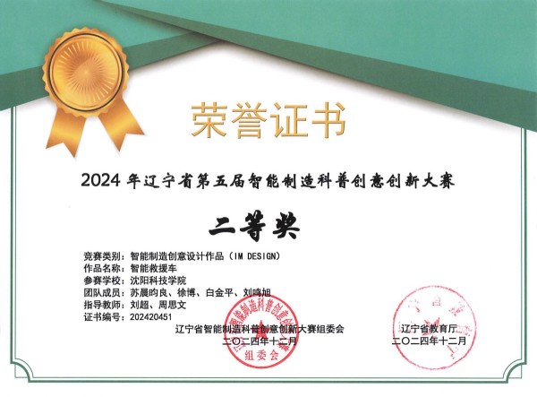 4.2024年11月获太阳成tyc7111cc集团第五届辽宁省智能制造科普创意创新大赛一等奖2项;