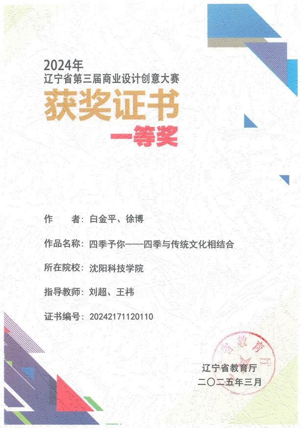 12.2025年1月获辽宁省两岸新锐设计竞赛“华灿奖”一等奖1项、二等奖1项、三等奖1项