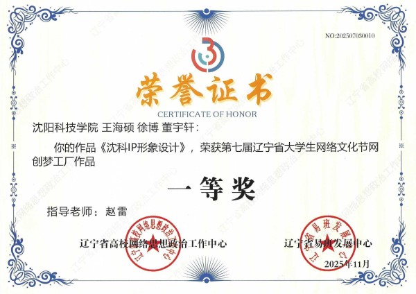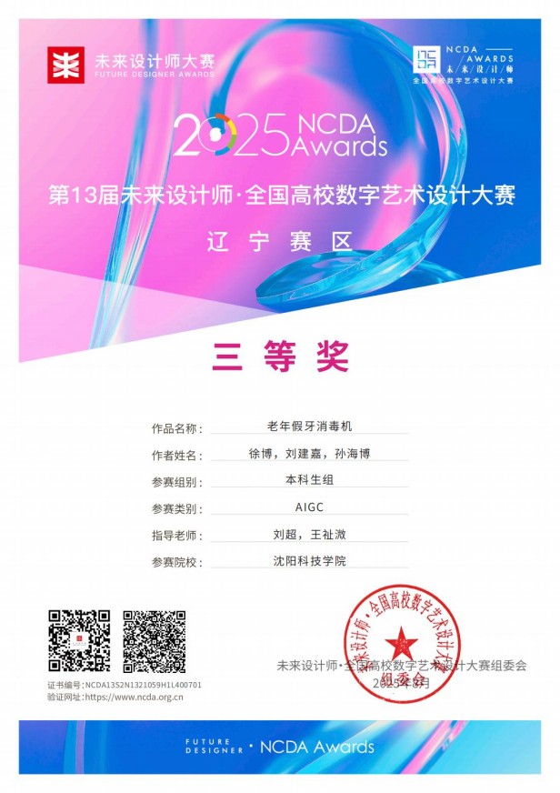 18.2025年9月获第十三届未来设计师·全国高校数字艺术设计大赛(辽宁赛区)省级一等奖1项、二等奖1项、三等奖3项