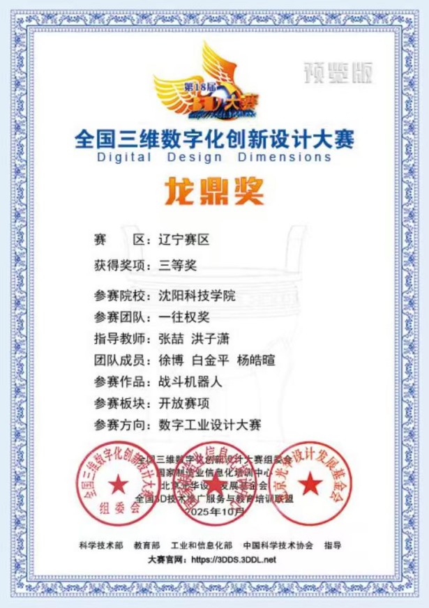 17.2025年9月获第六届辽宁省三维数字化创新设计大赛三等奖1项