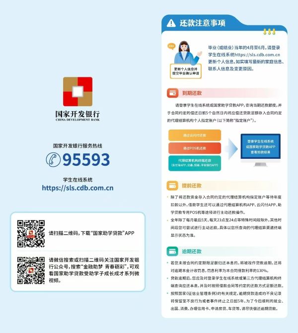 利息:学生在读期间利息全部由财政补贴,正常毕业后开始偿还利息和本金。
