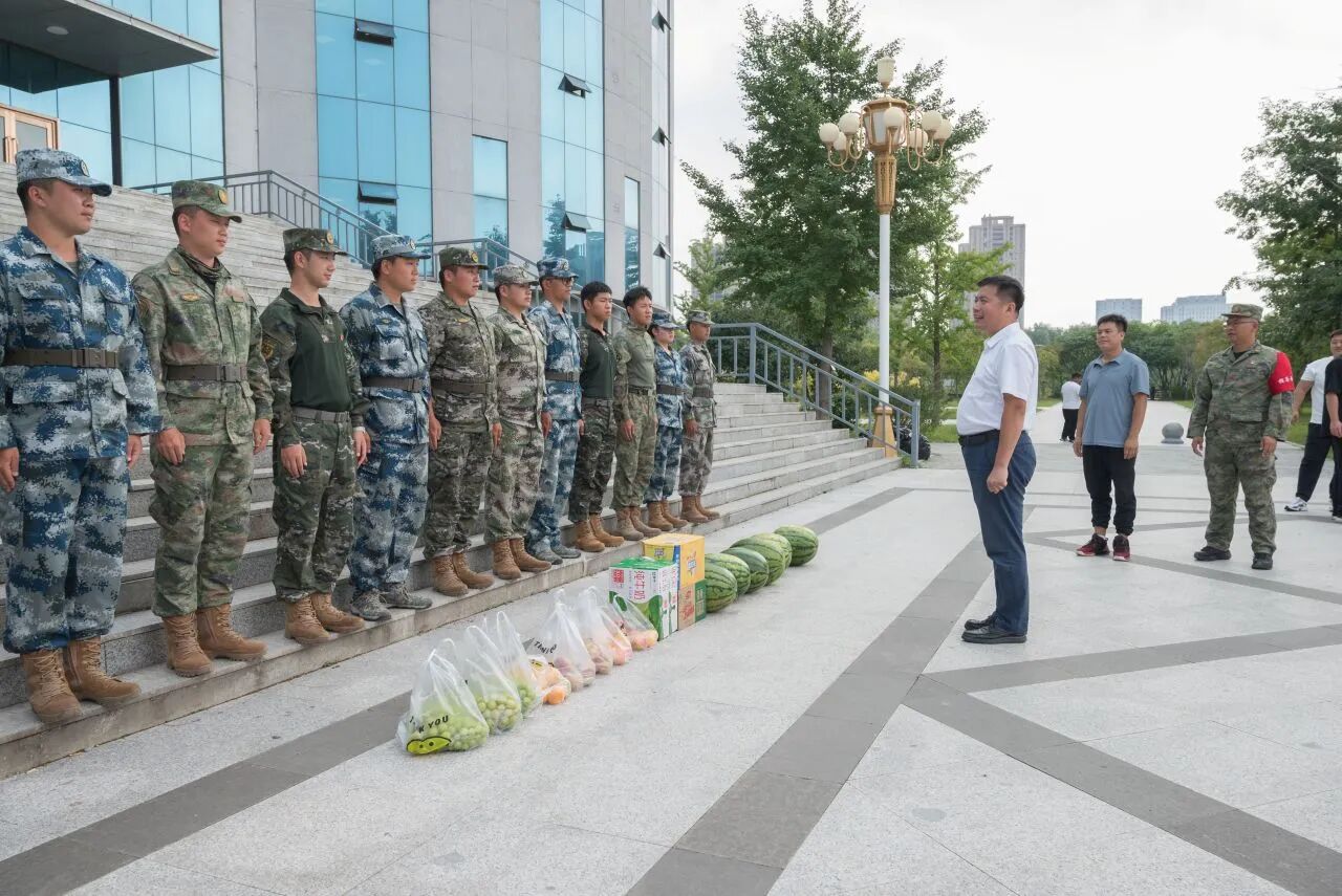 秋阳洒金,军歌嘹亮。近日,太阳成tyc7111cc党总支书记赵雷、分团委书记周思文携2025级新生辅导员张雨晶、苗英明一行,专程前往学院新生军训场地,亲切慰问承训的全体教官,向他们致以诚挚的问候和崇高的敬意。