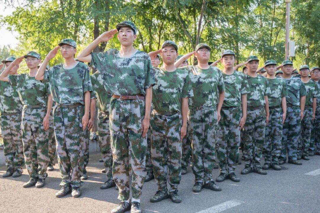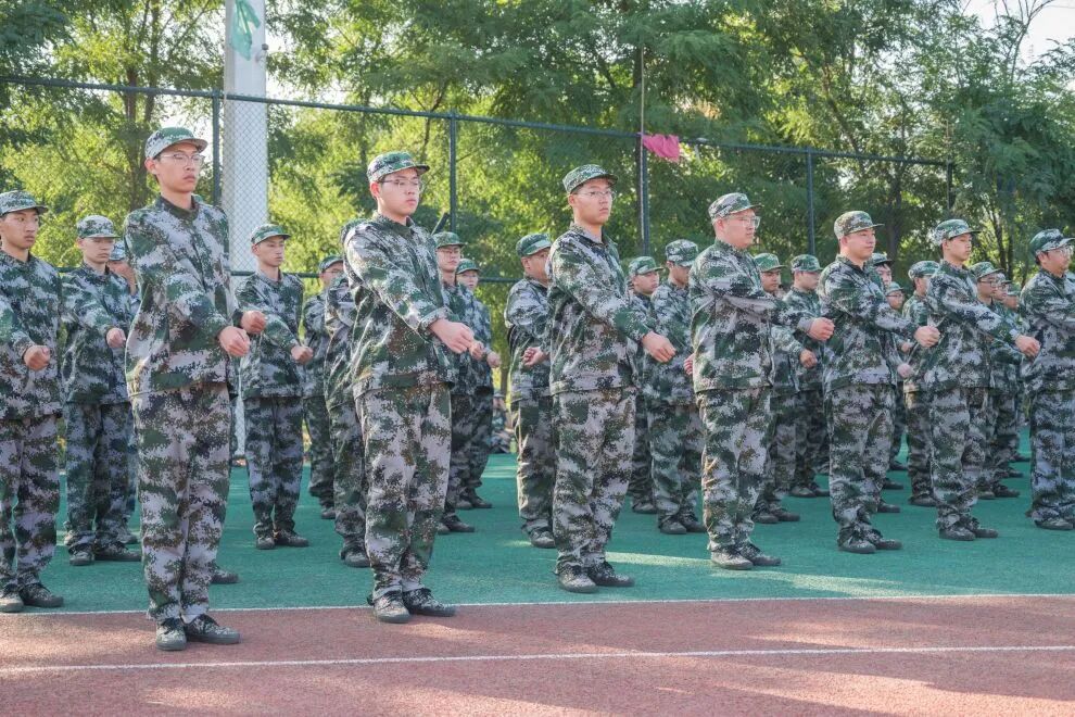午后阳光最烈时,正步训练展开。摆臂练习中,学生们手臂绷成直线,反复定格在空中;踢腿练习时,一条条腿抬至与地面平行,脚尖下压,如机械臂般稳定。“坚持住!机械人连正步都要踢出力学美感!”教官一边示范,一边高声鼓励。汗水从额角滑落,有的学生腿已微微颤抖,但仍咬牙坚持。每一次“啪”的并脚声,都是意志力的胜利。