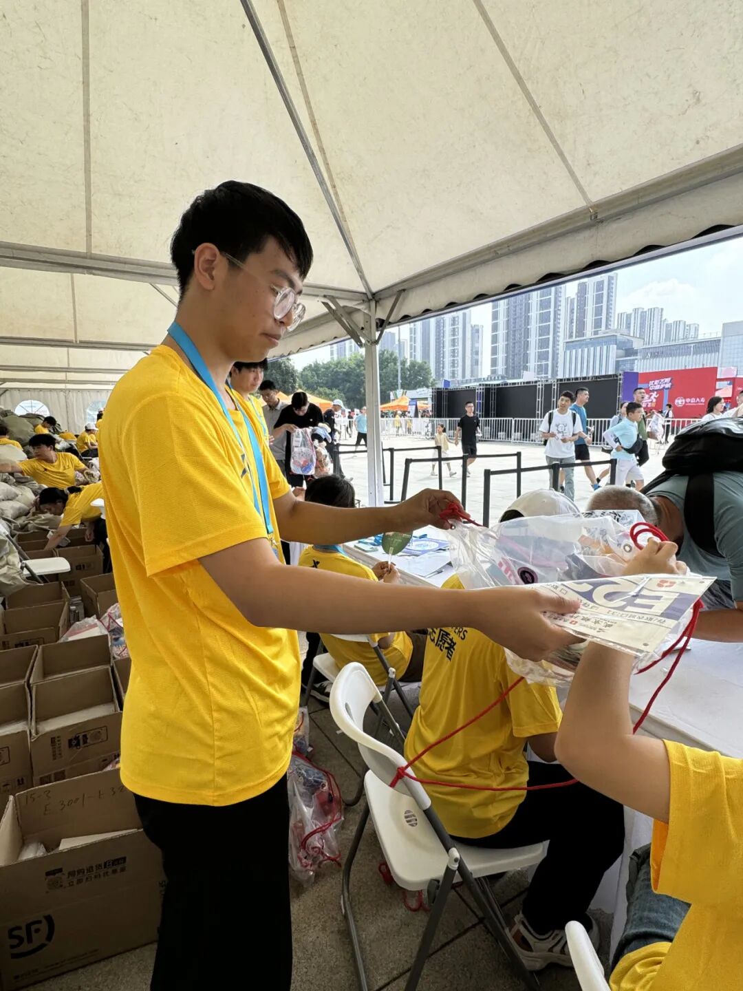 志愿者们主要负责沈马物资发放工作,面对海量的参赛物资,他们分工明确、有条不紊。在物资发放现场,志愿者们耐心地为选手讲解领物流程与注意事项,仔细核对每一位选手的信息,确保物资精准发放。在芯片检测环节,他们更是一丝不苟,逐一对芯片进行检测,为比赛的精准计时提供了有力保障。据统计,志愿者们共准确无误地将物资发放到了每一位选手手中,他们的专业与耐心得到了选手们的高度认可。