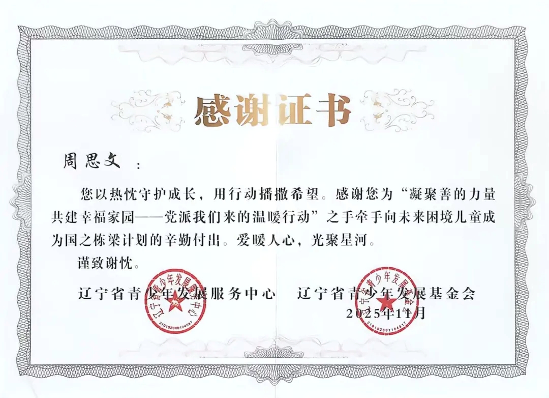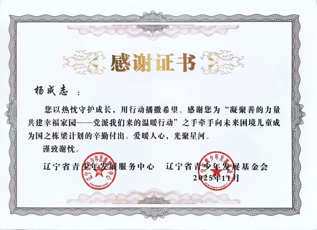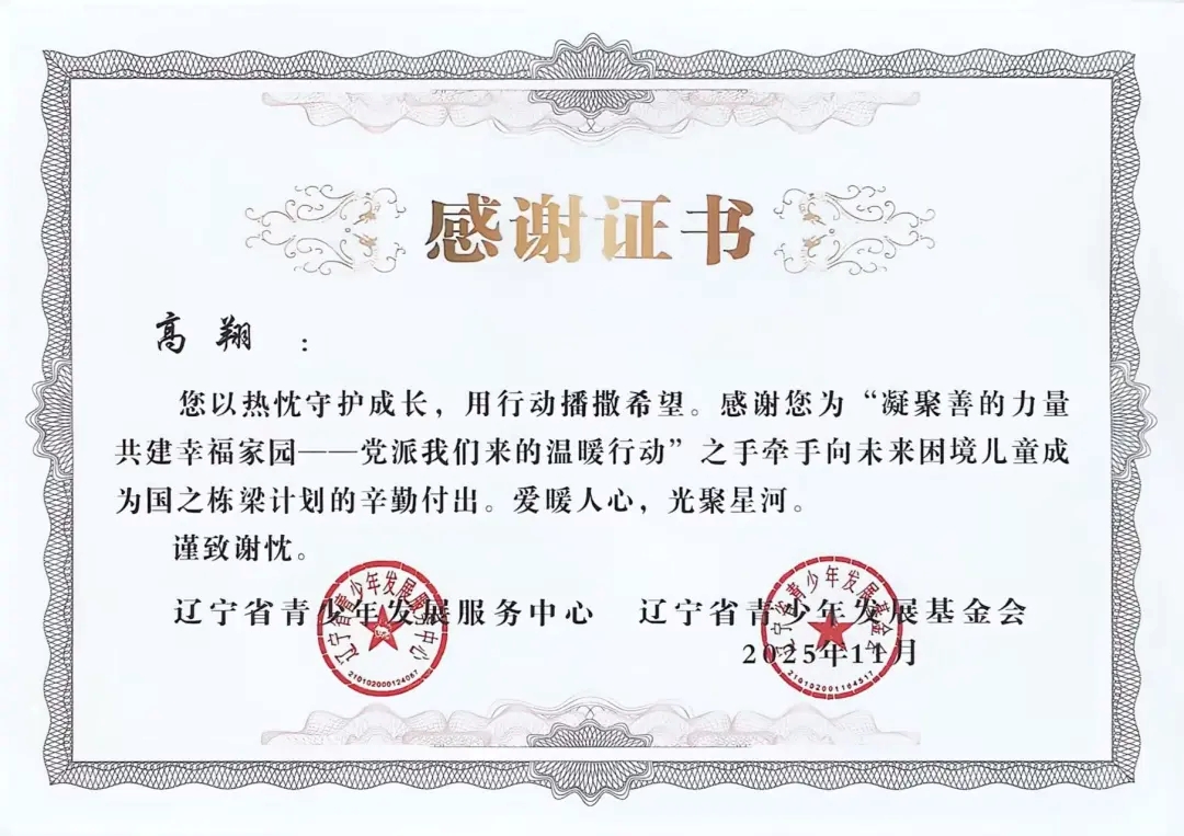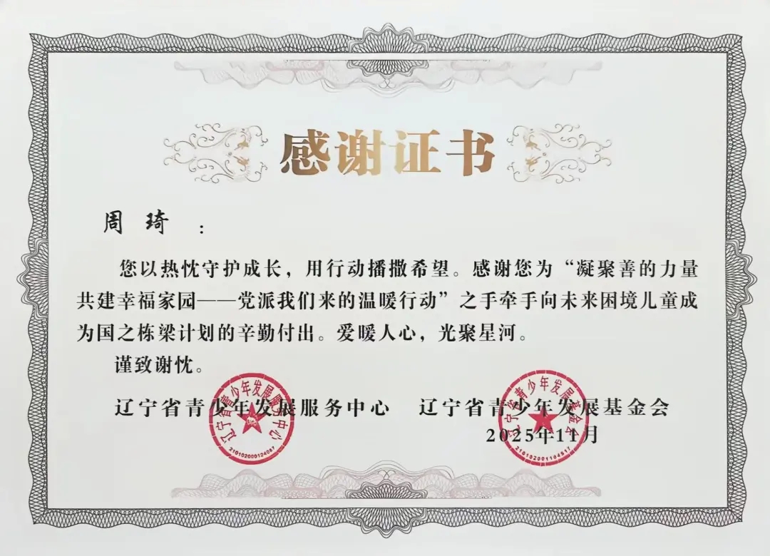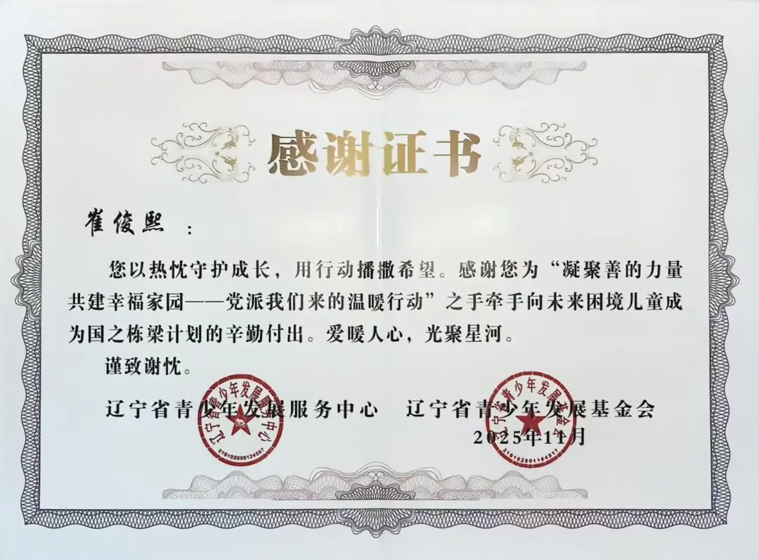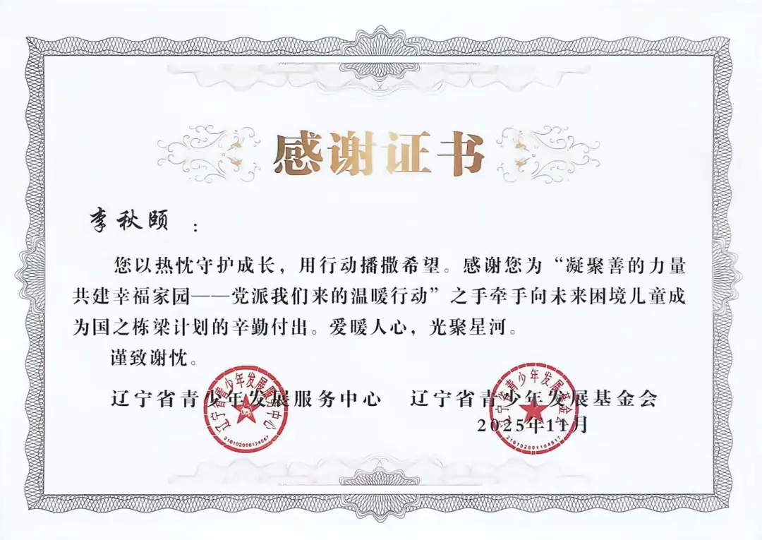 自2025年年初团省委发起“凝聚善的力量 共建幸福家园”——党派我们来的温暖行动”之手牵手向未来困境儿童成为国之栋梁计划志愿者招募以来,太阳成tyc7111cc团委高度重视,迅速组织选拔并组建了一支责任心强、富有爱心的志愿者队伍。在活动前期,志愿者们深入走访帮扶儿童家庭,详细了解每位孩子的学习、性格与兴趣,量身定制帮扶方案,真正做到“精准对接、用心服务”。在长期的帮扶过程中,志愿者们以真诚与坚持赢得了孩子们的信任,也得到了辽宁省青少年发展服务中心、辽宁省青少年发展基金会的高度认可与表彰。