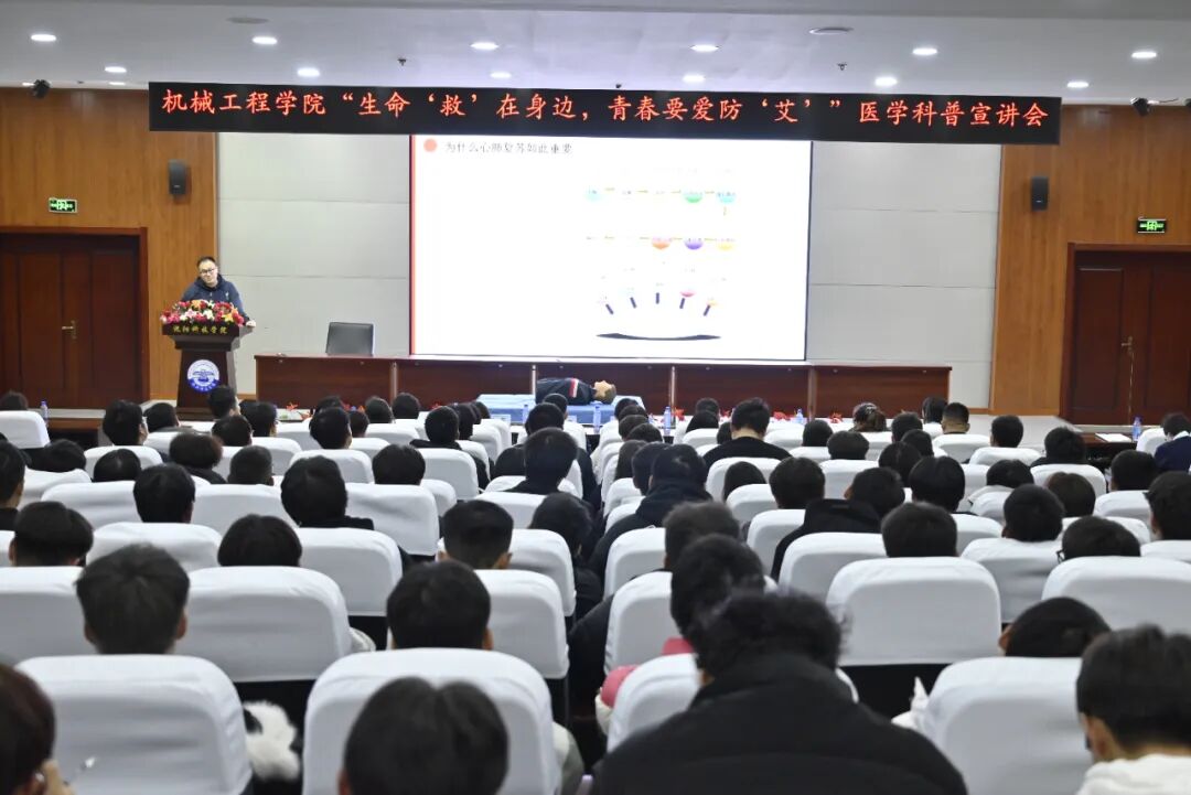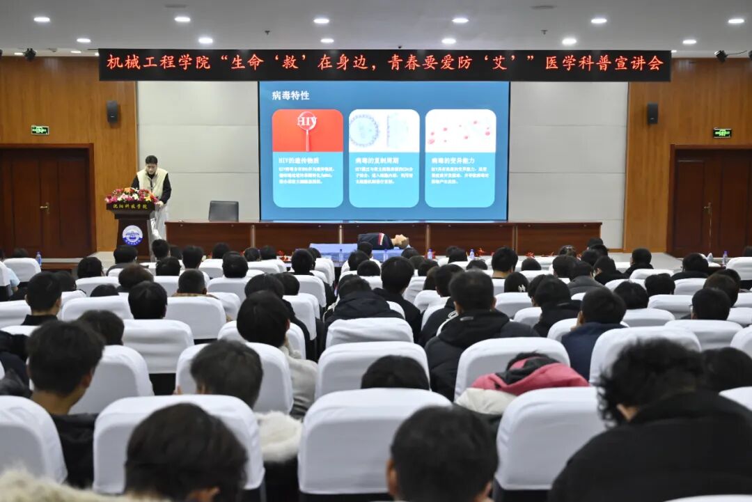 随后,盛京医院麻醉科主治医师、团支部书记王帅夫作了《艾滋病防治常识》专题讲座。他从基础知识入手,清晰梳理了艾滋病的传播途径、预防措施和治疗方法,有效帮助师生消除了认知误区,增强了防护意识与社会责任感。