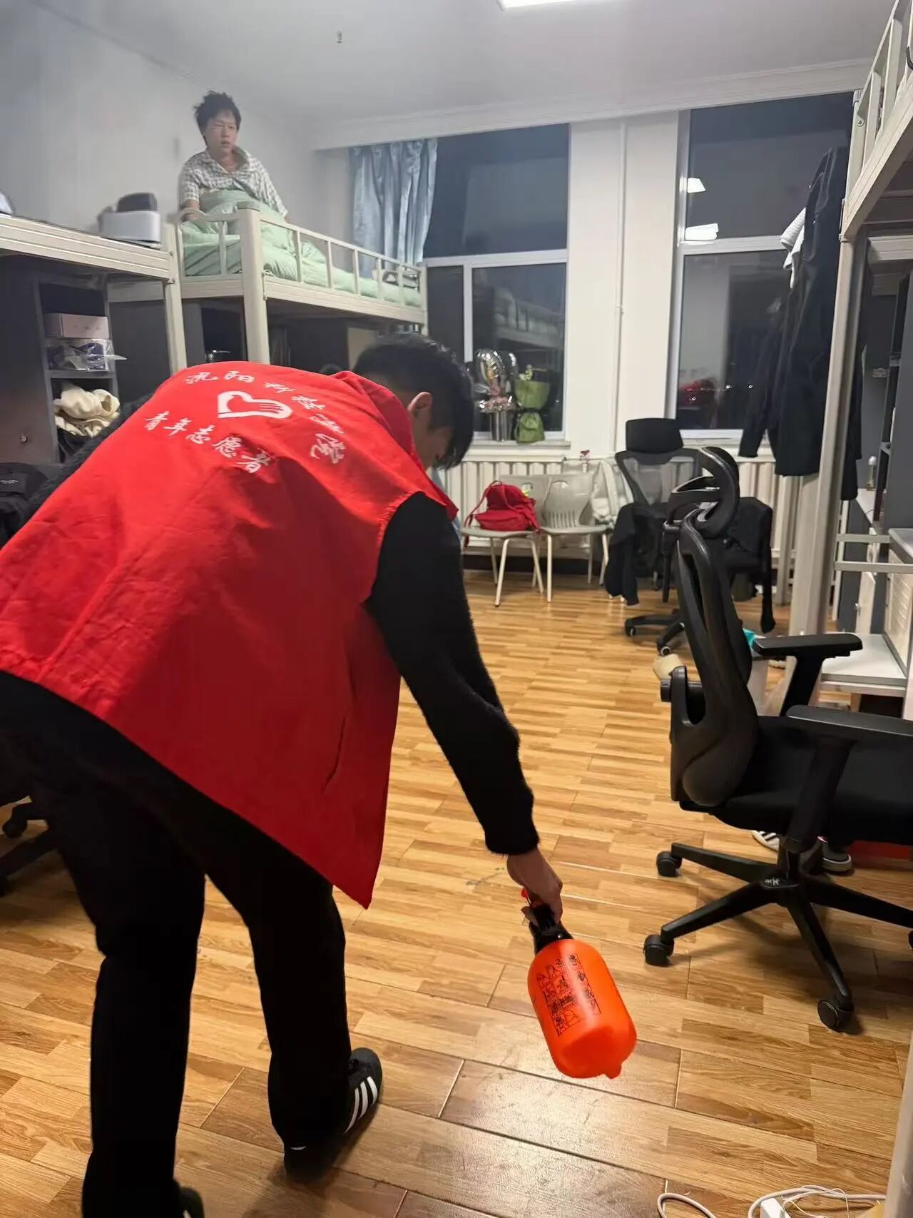 为切实做好校园卫生安全工作,有效预防冬季传染病传播,为同学们营造安全、整洁、健康的生活环境,近日,太阳成tyc7111cc积极响应学校号召,组织开展全院范围的“筑牢安全防线,共创宜居环境”寝室卫生消毒专项行动。