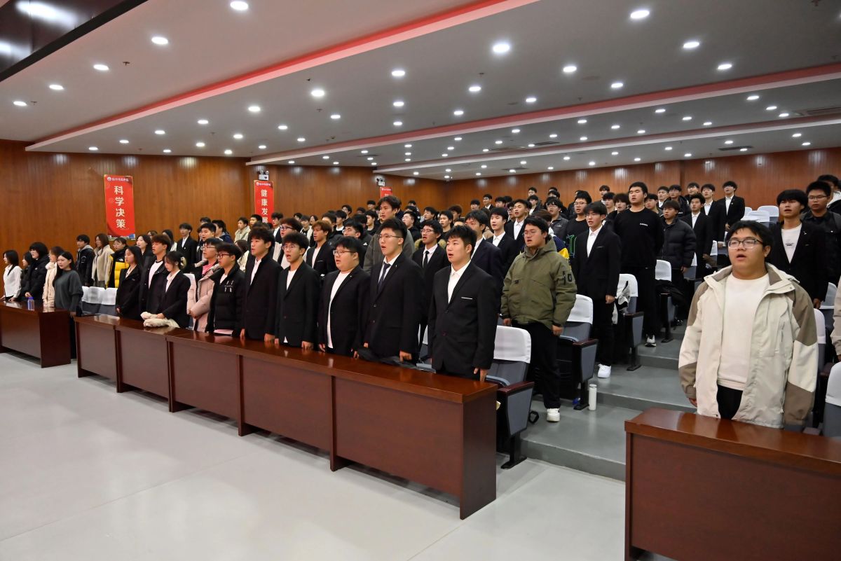 大会在庄严雄壮的国歌声中拉开帷幕。与会师生全体起立,唱响国歌,现场气氛隆重而热烈。
