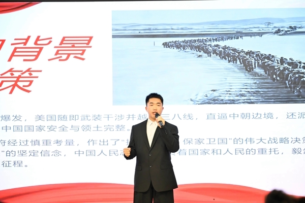 比赛现场,来自不同班级的参赛选手精神饱满、意气风发。他们以鲜活的历史故事为依托,以真挚的情感为纽带,或讲述抗美援朝战场上志愿军战士浴血奋战的英雄事迹,或抒发新时代青年对保家卫国精神的深刻感悟,或结合自身成长经历畅谈使命担当。选手们的演讲时而激昂高亢、催人奋进,时而温情脉脉、引人深思,生动诠释了“抗美援朝、保家卫国”的崇高精神内涵,赢得了现场评委和观众的阵阵掌声。