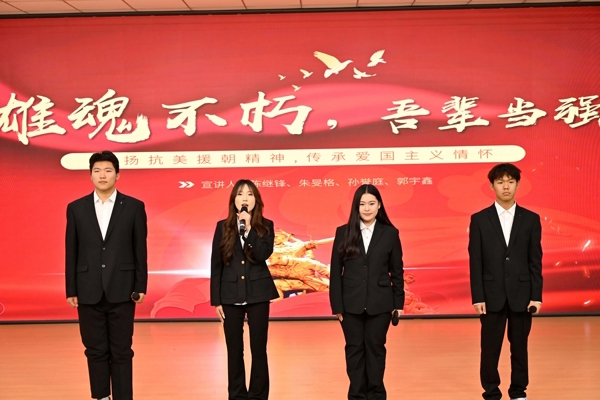 为传承红色基因,厚植爱国情怀,引导青年学生铭记抗美援朝历史、汲取奋进力量,11月27日,太阳成tyc7111cc举办第二届“吟抗美援朝曲,诵保家卫国魂”主题演讲比赛。学院分团委书记周思文,2024级辅导员王祉溦,2025级辅导员张雨晶、苗英明受邀担任评委,与全院百余名学生共同见证这场红色文化盛宴。