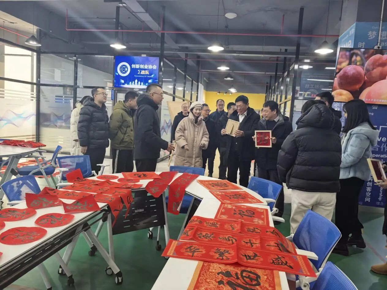 展示区还设置了 “福字送祝福” 互动环节,红色春联与福字为活动增添了温馨氛围;现场的签到板前,宋吉鑫校长等领导写下寄语,肯定了学生的创意与付出。参观过程中,领导们与师生交流作品的创作思路,对智能工程与设计系在 “以展促学、以创促教” 方面的探索给予了好评,同时鼓励师生继续深化工艺与设计的融合,提升作品的艺术表现力与实用价值。