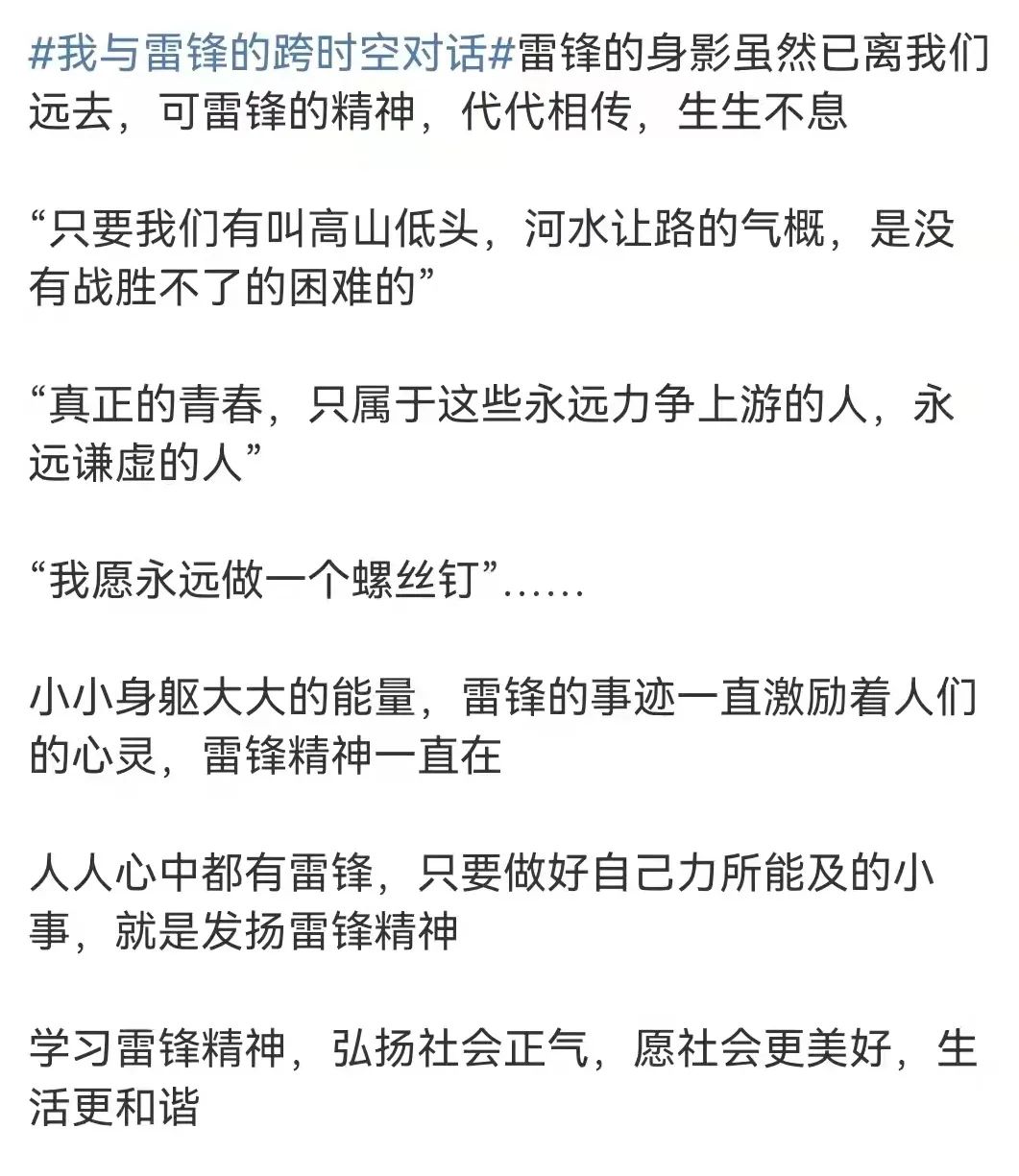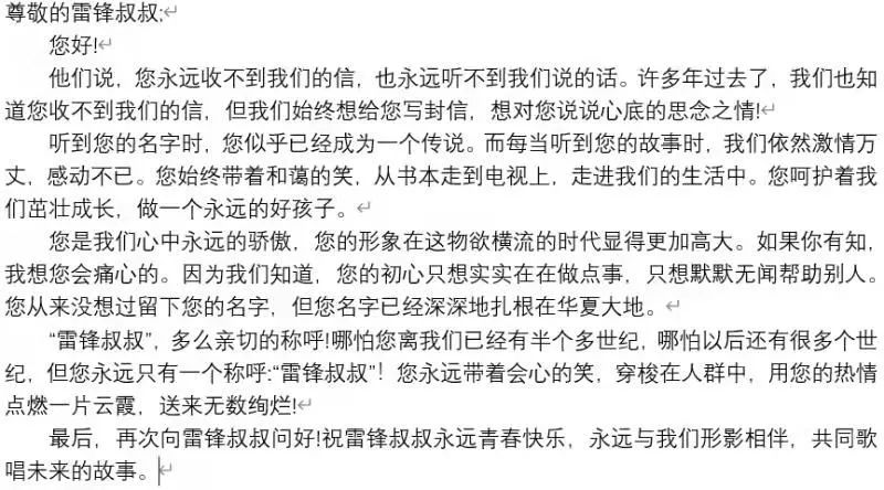 共同参加“为雷锋同志写一封跨越时空的书信”活动,一句句肺腑之言,表达了同学们对雷锋的敬佩之情和坚持以雷锋为榜样、践行雷锋精神的决心。
