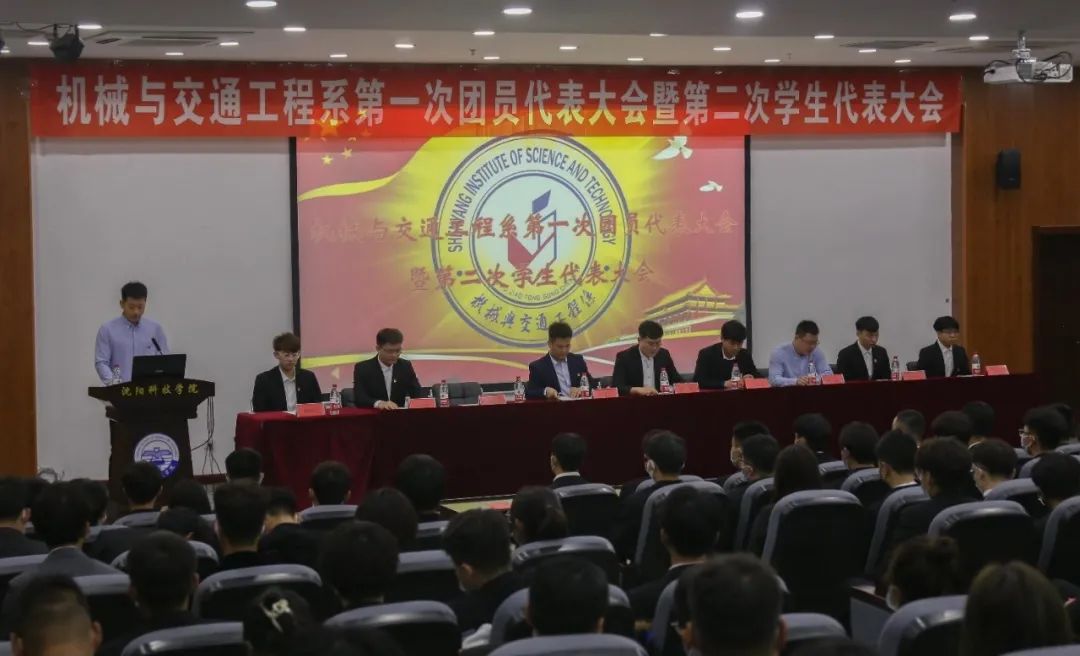 2021年11月6日中午12时,沈阳科技学院机械与交通工程系第一次团员代表大会暨第二次学生代表大会在图书馆六楼报告厅召开。机械与交通工程系党总支书记、学生工作副主任徐鹏老师,党总支副书记王昭春老师、分团委书记周思文老师,青年教师代表姜鑫老师、高宇航老师出席大会,150名团员代表和50名学生代表参加大会。会议由青年教师代表姜鑫老师主持。