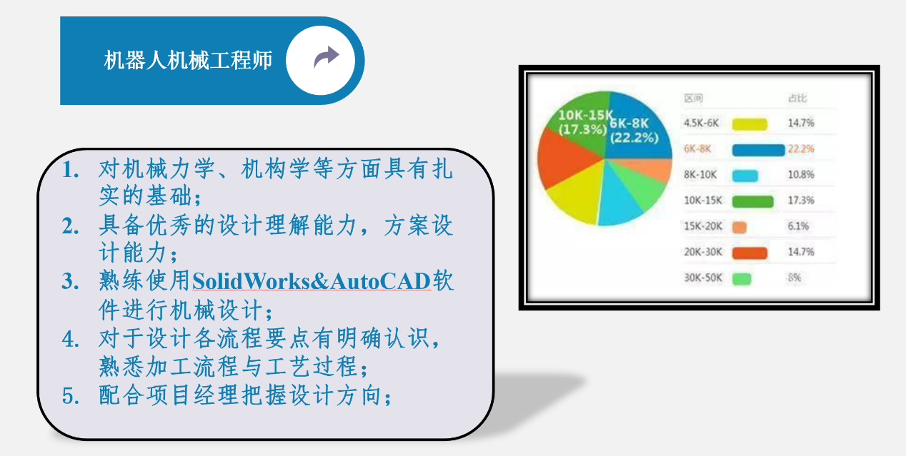 毕业生就业方向广泛,从事机器人产品设计开发、系统集成、生产线智能化升级、智能机器人产品研发等工作。