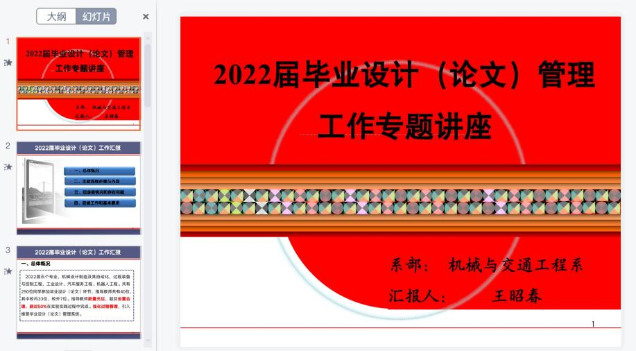 2022年4月2日,机械与交通工程系召开2022届毕业设计(论文)工作专题管理培训会议,会议由教学副主任王昭春主持,会议首先介绍了毕业设计(论文)工作开展情况,针对发现的问题,提出了整改意见和措施。其次对接下来毕业设计(论文)工作任务和工作要求进行了重点部署。最后组织专门教师为学生做规范性指导和培训工作。