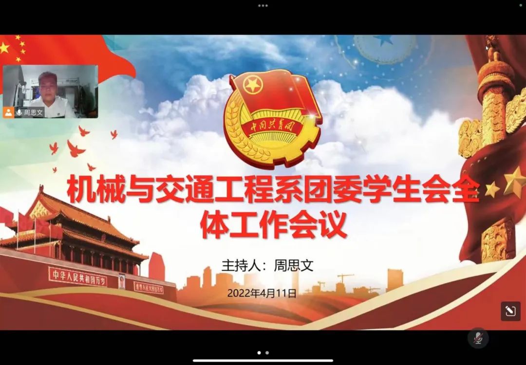 为保障疫情封校期间机械与交通工程系团委学生会各部门工作正常开展,进一步增强各部门凝聚力,切实推进各部门工作的有序开展,营造良好的校园文化氛围,提高学生干部个人能力与综合素养。近日,机械与交通工程系团委学生会召开全体工作会议。会议由分团委书记周思文老师主持,全体团学干部参加会议。