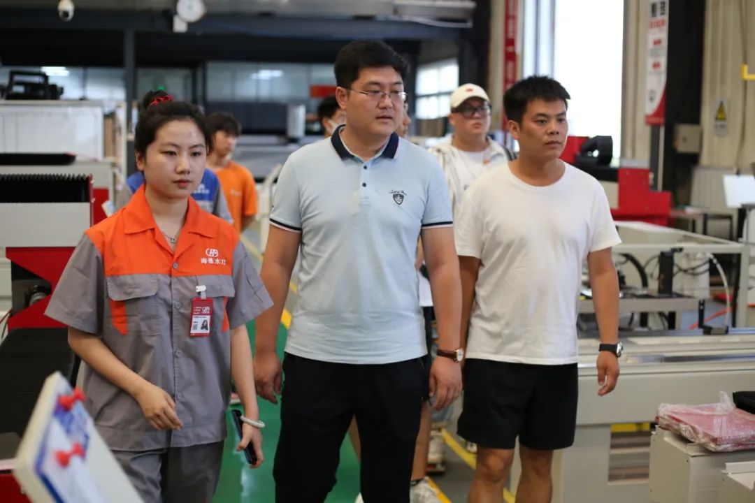 在产业园中,实践团队队员们参观了企业产区, 了解了公司成立的背景和主要研究方向,以及多种切割技术相融合的综合切割解决方案和应用场景。在企业负责人的介绍中,了解到许多行业顶尖的知识,体会到了前沿科技的魅力。座谈会上双方就我系学生实习、就业、人才培养、推进产学研融合以及探索校企联合人才培养新模式等问题进行了深入交流。