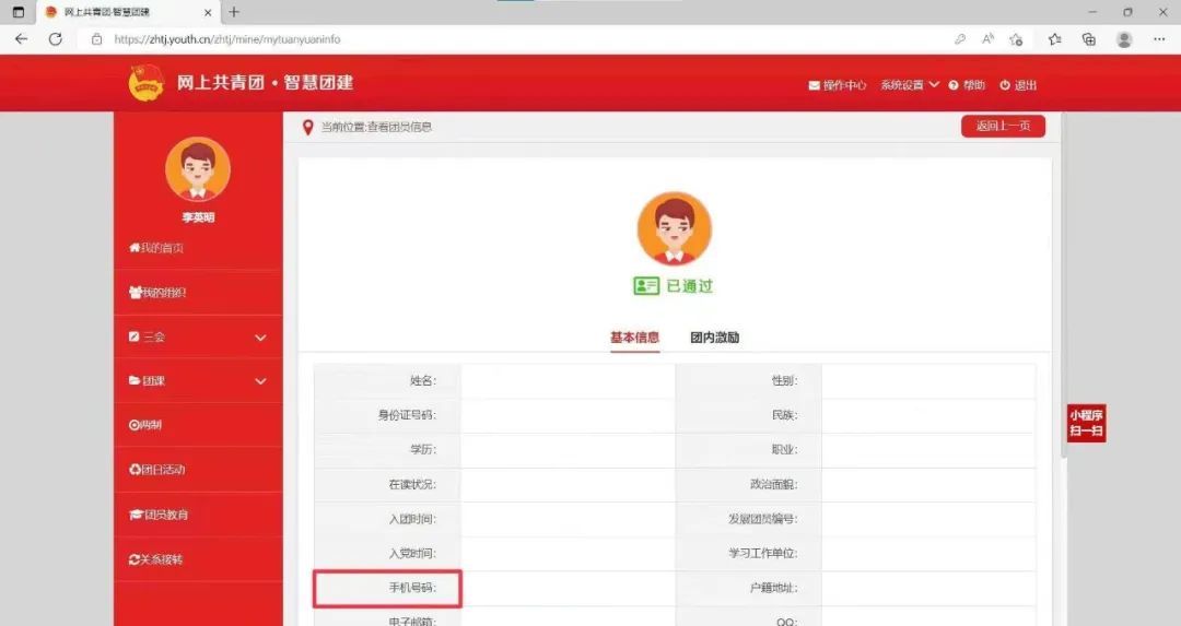 ②进入页面后请仔细检查并完善个人信息,手机号码为必填项,若号码有变动,请及时更改。