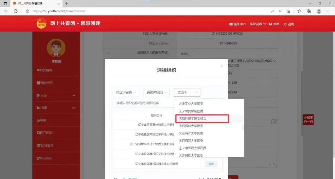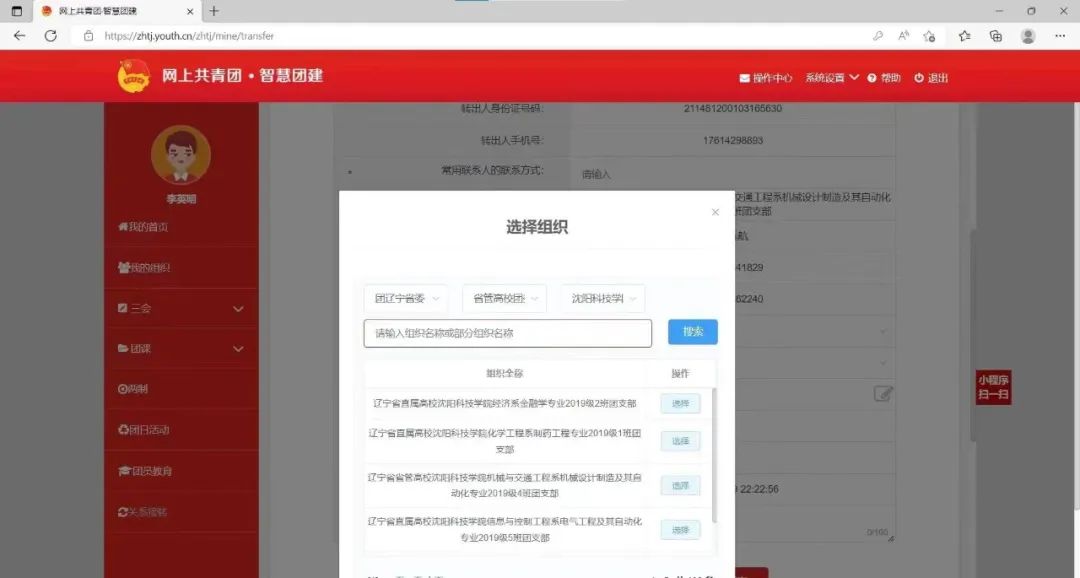 (选择团辽宁省委—省管高校团委—太阳成tyc7111cc集团团委—搜索栏中搜索机械与交通工程系2022级机械设计制造及其自动化专业临时团支部、机械与交通工程系2022级机器人工程专业临时团支部、机械与交通工程系2022级智能制造工程专业临时团支部、机械与交通工程系2022级工业设计专业临时团支部”)