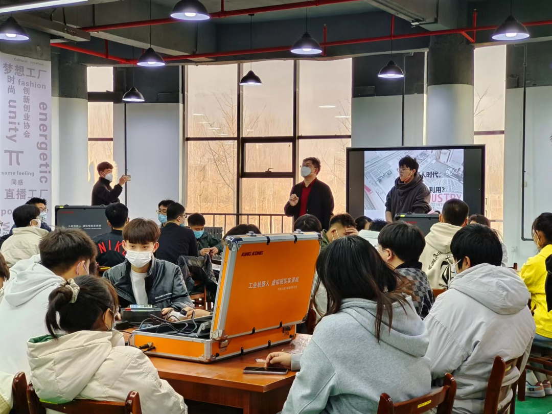 2022年11月9日下午系党总支书、副主任徐鹏特邀沈阳晴空教育科技有限公司的机器人工程师在创新创业教育学院为机械工程系机器人专业学生上了一堂精彩、生动的虚拟机器人编程、操作体验课。