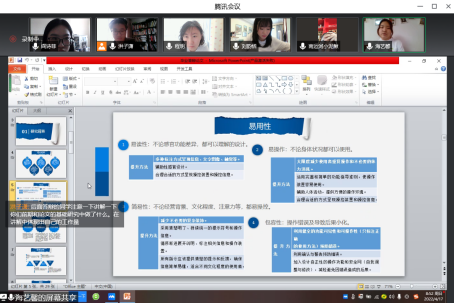 本次中期线上答辩采取抽查的方式,共计83名学生参与线上答辩。线上答辩组共分成6组,每组分别建有答辩微信群,便于学生和老师的联系和答辩通知安排等。此次线上答辩采用腾讯会议,利用屏幕共享,每个学生按照规定的顺序依次进行线上PPT展示,主要从目前已完成的工作、遇到的问题与下一步的计划等方面进行汇报。然后答辩评委老师针对学生汇报的内容进行提问,并对后期毕业设计工作提出了指导意见。答辩结束后,每组答辩委员会根据学生的答辩表现和问题回答情况综合给出中期检查成绩。整个答辩过程要求学生打开摄像头,更好地增加师生间的互动,所有小组的中期检查答辩顺利地完成。
