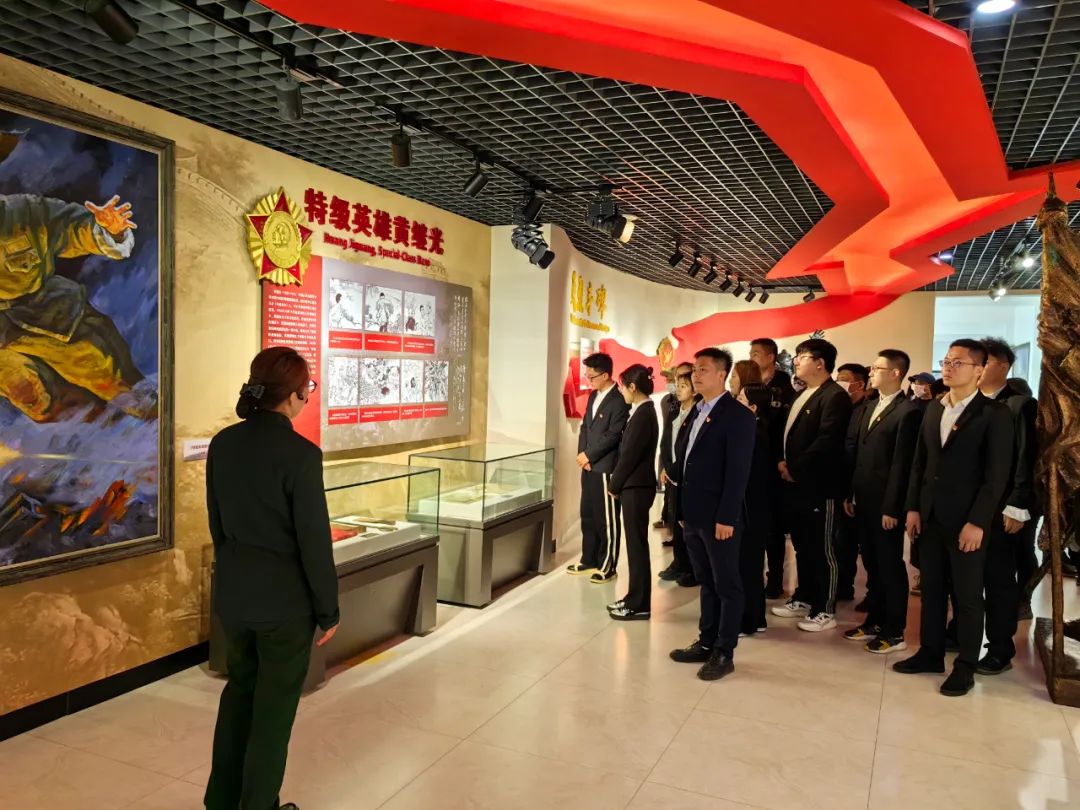 随后,全体党员一同参观抗美援朝纪念馆,讲解员的详细讲解让全体党员深刻了解到先辈们英勇无畏的精神,也让党员们认识到了安稳生活的来之不易。抗美援朝烈士陵园于1999年10月15日改建落成,是1998年沈阳市精神文明建设十件大事之一。70年前,先辈英雄成立中国人民志愿军奔赴朝鲜,为了保家卫国,横跨鸭绿江,拉开了抗美援朝的序幕。英雄志、忠骨魂,英雄精神如红色星火般照亮我们前行的路。