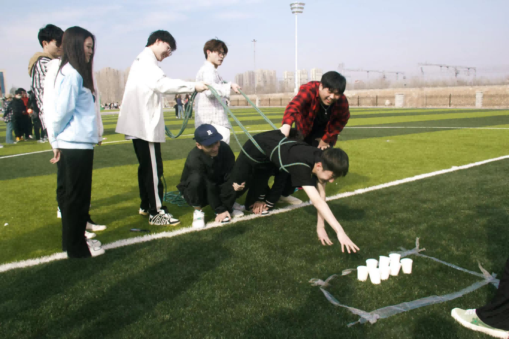 正式活动开始前,在沈阳体育学院教练员的组织下首先进入破冰环节,打破不同年级、不同部门之间的陌生感,用“桃花朵朵开”小游戏随机将学生干部分成九个小组,并选出每组的队长,以及团队队名、口号,所有小伙伴都热情高涨、斗志昂扬,各自展示出最棒的团队风采。所组建的九个小组分别展示了响亮的口号,霸气的队名和精彩的才艺展示,激发了所有学生干部的斗志。九个小组一一闪亮登场后,正式开启充满挑战的比拼环节。