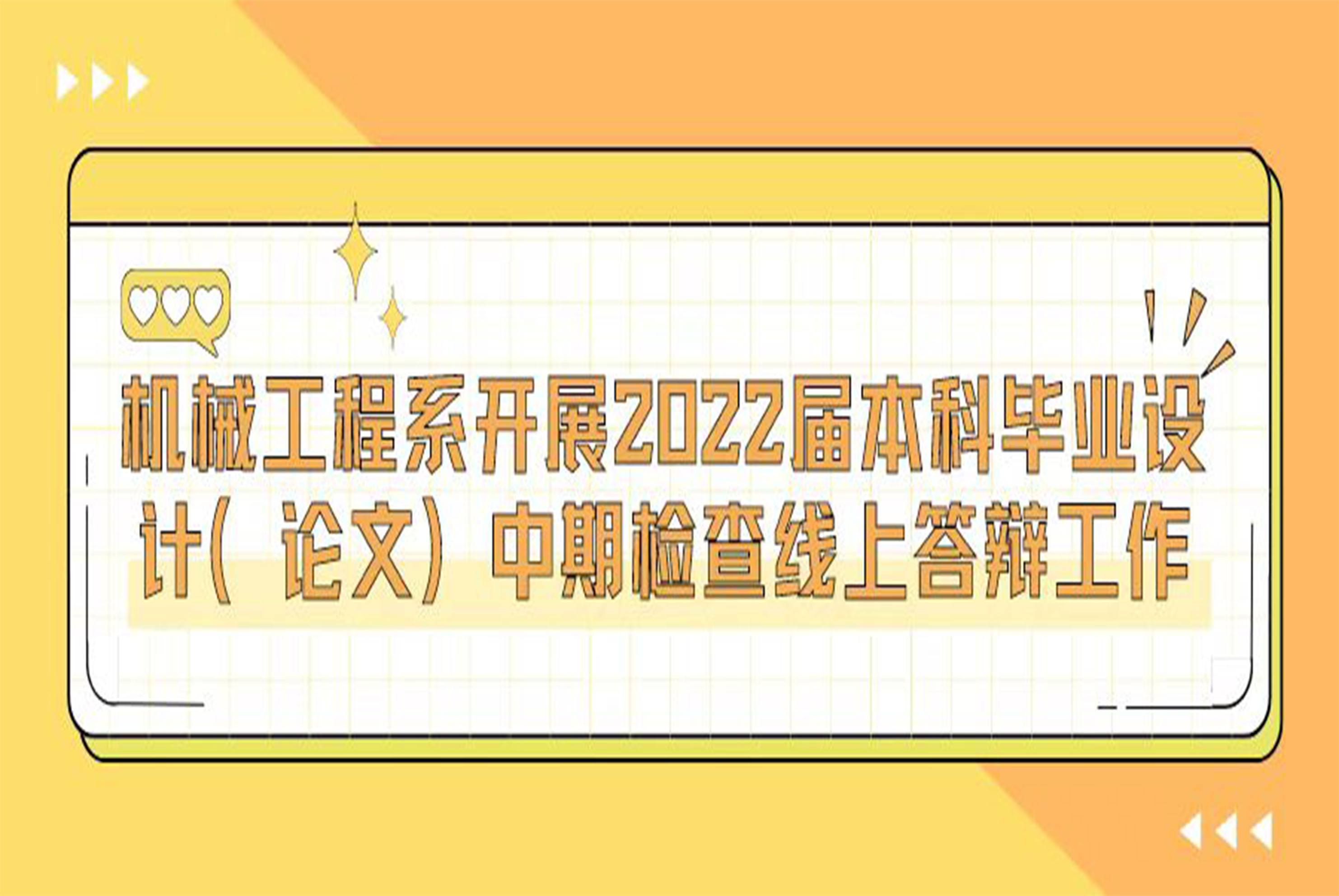 因疫情影响,2022届毕业设计采取教师线上指导。为了解学生论文进展、指导老师的线上指导情况,保证本科生毕业设计(论文)按期、高质量完成,机械与交通工程系于4月16日下午和4月17日上午对2022届毕业设计(论文)进行中期检查线上答辩。...