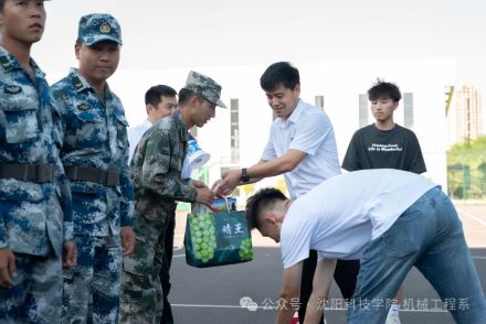 2024年9月12日下午,机械工程系党总支书记赵雷、系主任王昭春、学生工作办公室主任周思文、2024级新生辅导员王祉溦到军训现场看望慰问2024级军训教官和参训学生。...