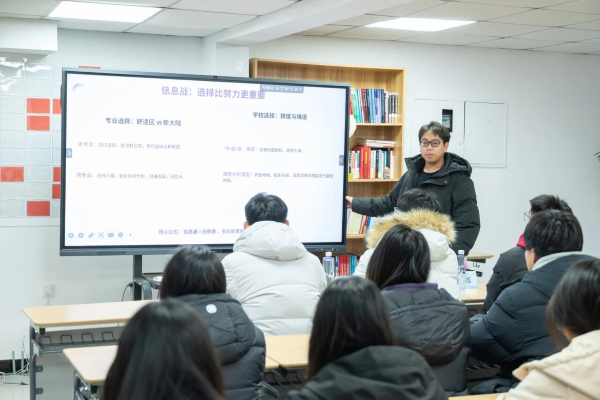 分享会上,四位校友围绕考研全过程的关键环节进行了细致梳理与深入讲解。在专业与院校选择方面,他们分享了如何结合个人兴趣、专业特长、地域因素、院校实力与历年招录数据,科学合理地确定目标,避免盲目跟风。针对考试科目复习,嘉宾们分别就政治、英语、数学及专业课的复习方法、时间分配、资料选用及答题技巧提供了具体建议,强调了夯实基础、构建知识体系与针对性练习的重要性。对于不同备考阶段的规划,他们分享了从前期准备、暑期强化到冲刺模拟的阶段性任务与心态调整策略。