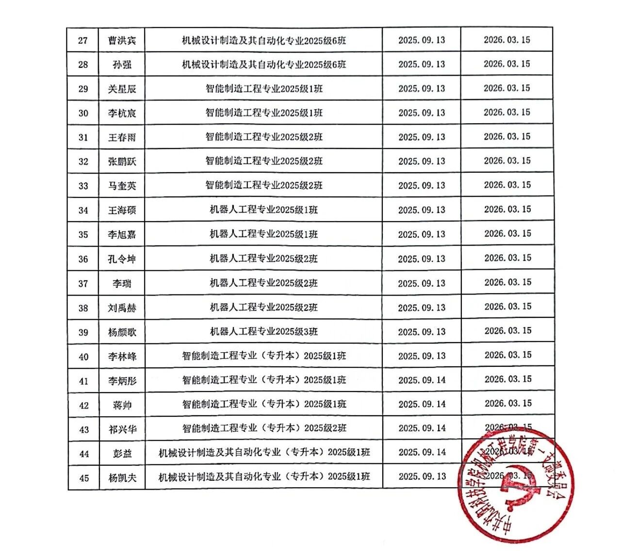 根据《中国共产党发展党员工作细则》相关规定,经个人申请、团支部推优、党支部委员会讨论决定,确定刘猛等45名同志为2026年上半年入党积极分子。现将名单予以公示,公示时间从2026年3月25日至2026年3月31日止。