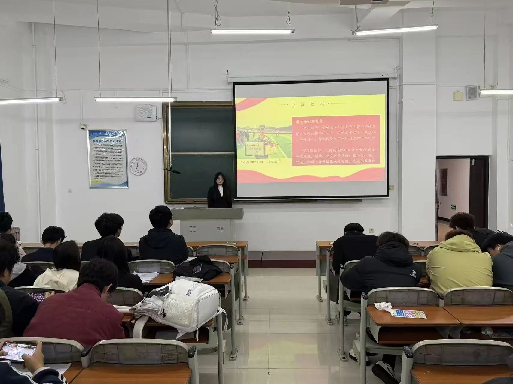 与此同时,学院开展雷锋日记诵读分享活动,同学们品读雷锋经典、交流学习心得,深刻领会雷锋精神时代内涵;各班级开展冬奥精神专题学习,深入学习徐梦桃等冬奥冠军不畏艰难、顽强拼搏、超越自我、为国争光的先进事迹,引导青年学子从奥运健儿奋斗历程中汲取力量,厚植家国情怀与进取精神,在校园营造崇德向善、奋勇争先的浓厚氛围。